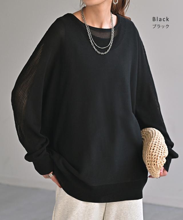 ニット 前後2WAY サマーニット レディース トップス 一部4月下旬入荷 セーター オーバー 透かし編み 涼しい メッシュ プルオーバー ロング 長袖 長い レイヤード 薄手 シアー チュニック ドルマン ゆったり 大きいサイズ 体型カバー お尻が隠れる 黒 春 夏 HUG.U