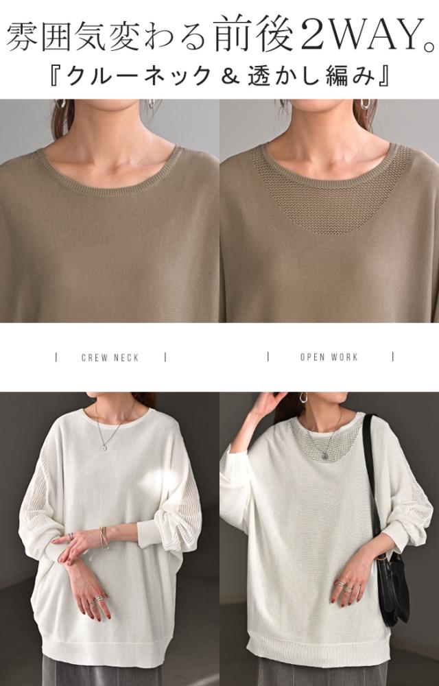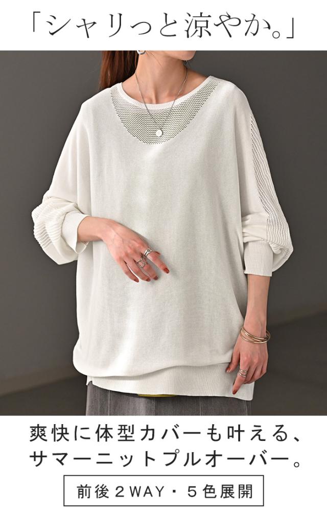 前後2way 前後2WAY 2way 2WAY サマーニット サマー 薄手 薄目 薄め 薄い 透かし編み 透かし編みニット 透かし編みセーター 透かし編みプルオーバー メッシュ メッシュニット メッシュセーター メッシュプルオーバー かぎあみ かぎ編み かぎ編みニット かぎ編みセーター シアー シースルー 透け感 透け シアートップス シアーニット シアーセーター シースルートップス シースルーニット シースルーセーター メッシュ レイヤードトップス レイヤードインナー レイヤードニット ざっくり ざっくり編み ざっくり編みニット ざっくり編みセーターざっくり編みプルオーバー ローゲージ ローゲージニット ローゲージセーター ローゲージプルオーバー レイヤードニット リブニット ライトニット ニットウェア ニットウエア ニットプルオーバー カットソー 編み地 編み 編みニット ボリューム ボリュームニット ビッグニット ビックニット オーバーニット オーバーセーター ニットトップス ロングニット ロングセーター ロング 長い 長め チュニック チュニック丈 チュニック丈ニット チュニック丈セーター リブ 袖口リブ リブ袖 リブ仕様 ミディアム ミディアム丈 ミドル ミドル丈 ドロップショルダー ドルマントップス ドルマン ドルマン袖 ドルマンスリーブ ドルマンスリーヴ ぽわん ポワン ぽわん袖 ポワン袖 フレア袖 バルーン袖 バルーンスリーブ ボリューム袖 ボリュームスリーブ パフ袖 パフスリーブ Uネック U字ネック 丸首 クルーネック 夏ニット 夏セーター 春ニット 春セーター 軽い 軽め 軽量 テンセル テンセルトップス エコ サステナブル ひんやり 冷たい 涼しい 暑がり 冷却 ラクチン らくちん 楽ちん 楽 動きやすい ゆったり ゆる ゆったりサイズ ゆるカジ ゆるい ゆるファッション フリーサイズ フリー S M L LL 2L XL 3L XXL LLL ブラック 黒 黒色 ホワイト 白 白色 ライトブルー ブルー 青 青色 パープル 紫 紫色 ブラウン モカ 茶 茶色 ベージュ レッド 赤 赤色 ルビーレッド レイヤード 重ね着 重ね レイヤードコーデ 体型カバー 二の腕カバー 二の腕隠し 着痩せ 着回し お尻が隠れる 大きい 大きめ 大き目 プラスサイズ 大きいサイズ ビッグ ビック big ビックシルエット ビッグシルエット ビックサイズ ビッグサイズ オーバーサイズ オーバー カジュアル ナチュラル 大人カジュアル レディースファッション ベーシック オフィス オフィスカジュアル テレワーク リモートワーク リモート オンライン飲み会 韓国ファッション 韓国風 韓国 ストリート おうち時間 お家時間 デート お出かけ フェス リゾート ビーチ 海 旅行 飛行機 パーティー パーティ 着回し 母の日 プレゼント ギフト 贈り物 クリスマス シンプル 大人 オトナ 大人カジュアル オフィスカジュアル オフィス レディースファッション 女性 綺麗 綺麗目 きれい キレイ キレイめ キレイメ きれいめ 高見え 上質 上品 ゆる ゆったり 旬 トレンド 20代 30代 40代 50代 60代 おしゃれ お洒落 オシャレ 可愛い かわいい カワイイ カッコいい 格好良い カッコイイ 春 夏 秋 冬 春夏 秋冬 HUG.U HUGU ハグユー はぐゆー