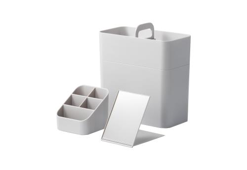 ライクイット (like-it) 持ち運びができるメイクボックス 収納ケース 鏡付き ドレッサー 汚れてもお手入れしやすいプラスチック製 スリム 約幅11x奥21x高23cm グレー 日本製