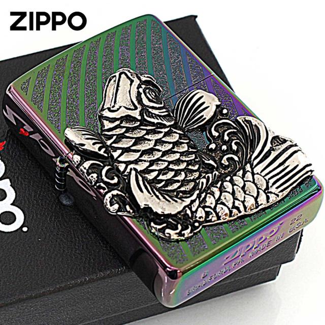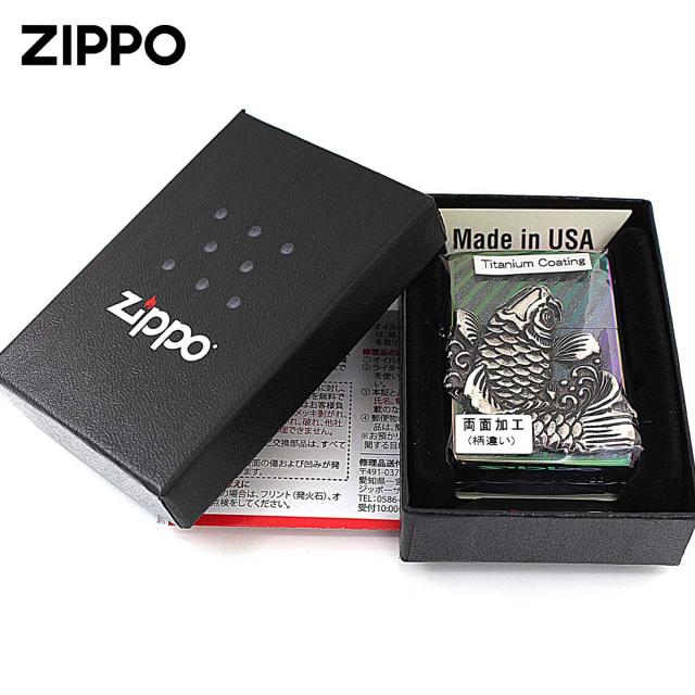 Zippo ジッポライター 鯉 龍 ドラゴン 登竜門 レインボー ニッケルメタル貼り チタンコーティング TC-R Ni メール便専用商品