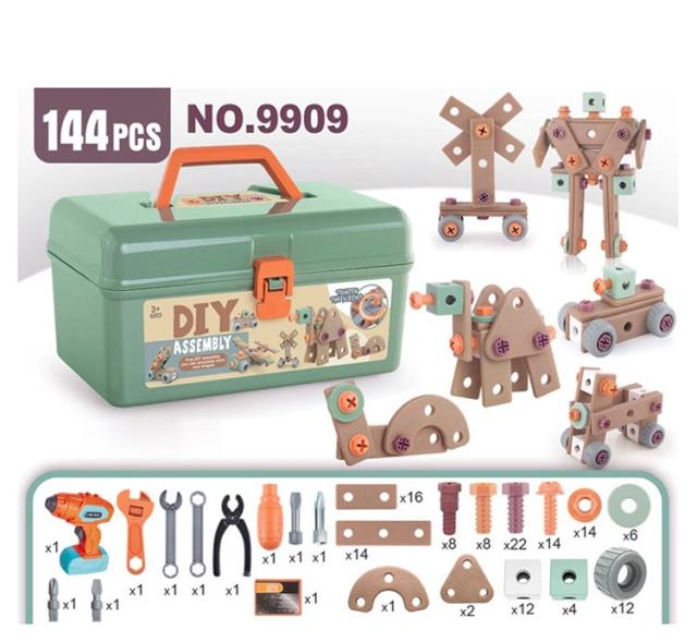 電動ドリルおもちゃ 工具おもちゃ 144点セット 電動ドリルおもちゃ ドリル ねじ 大工さんセット おもちゃ 組み立て 知育玩具 玩具DIY 立体修理キット ツールボックス 子供用 おもちゃ クリスマス 誕生日 プレゼント
