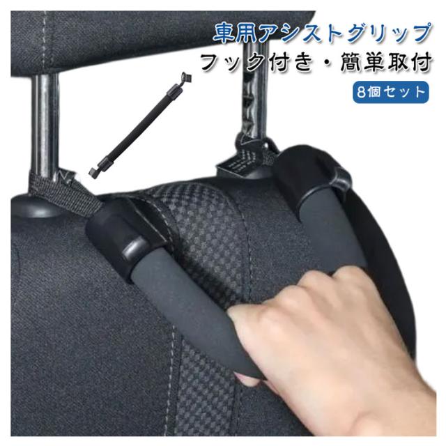 汎用 カーグリップ 安心 持ち手 カンタン取付 車 車用品 安全 アシストグリップ 手すり フック付き ソフト 握りやすい 補助器具 8個セット シートグリップ 負担軽減 後部座席 ヘッドレスト 足腰の弱い補助 乗車 降車 車椅子 車載