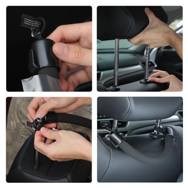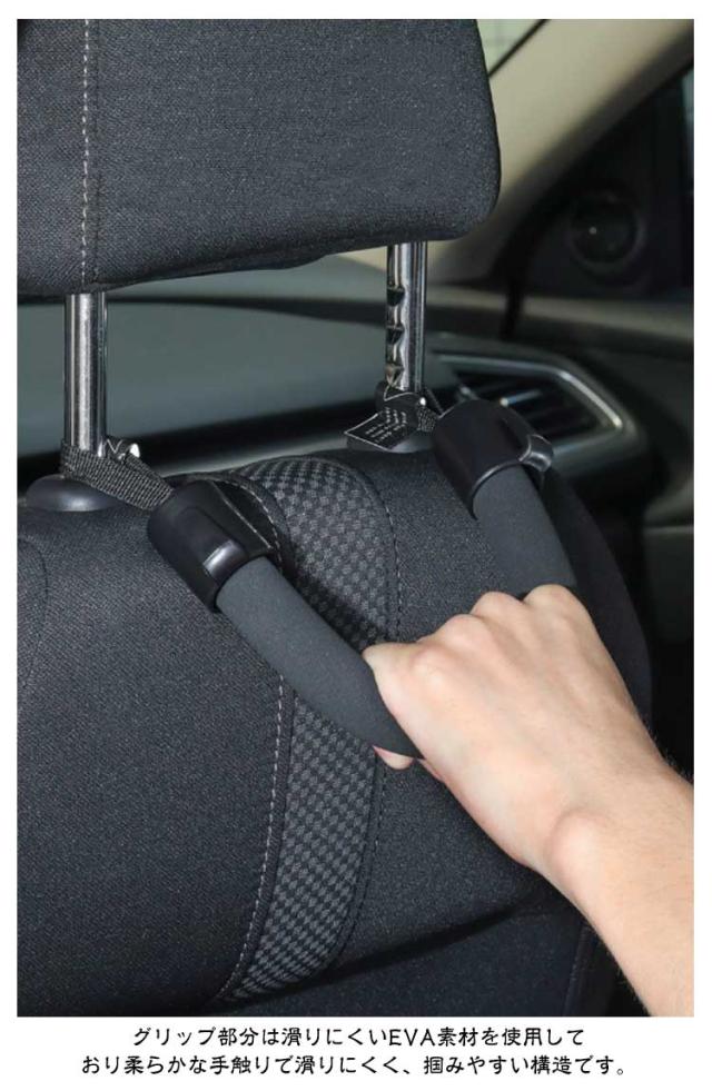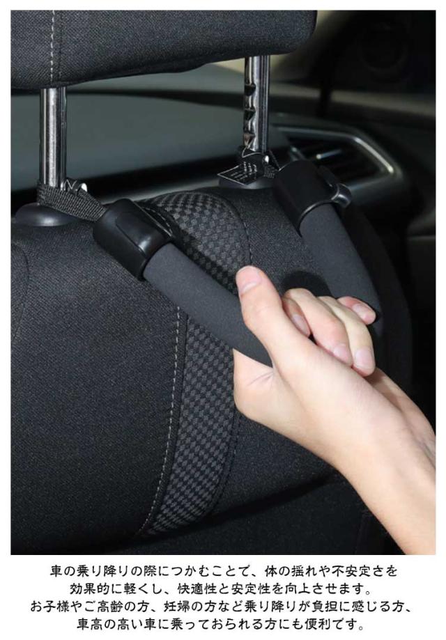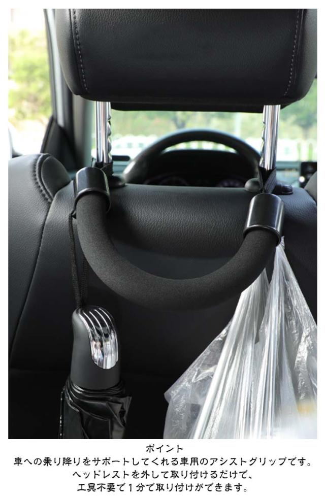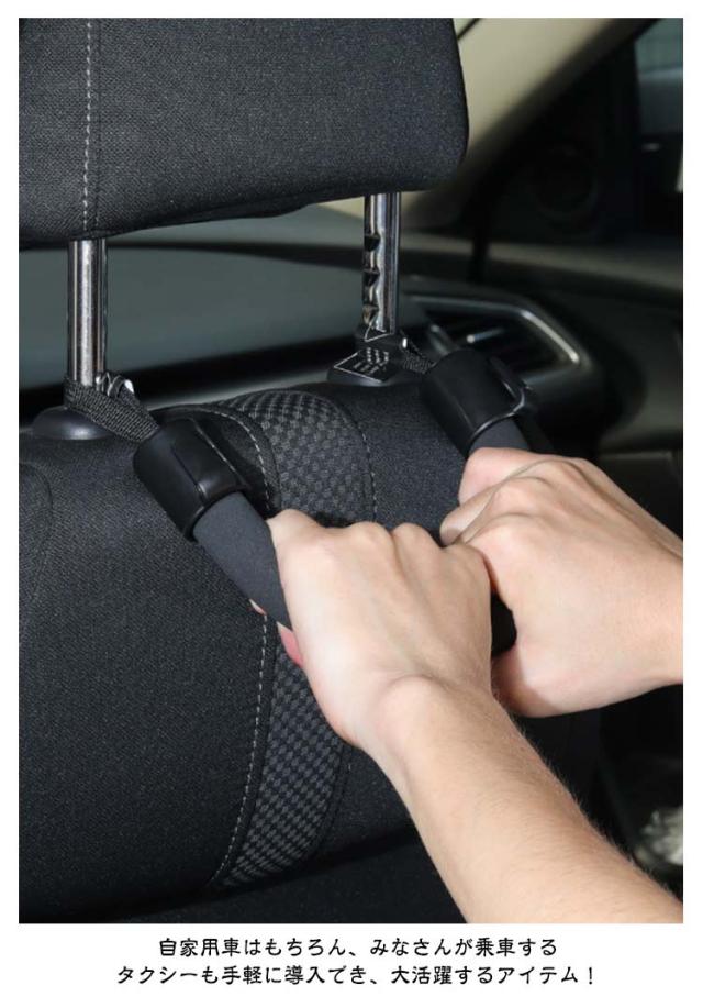 | 8個セット 車用アシストグリップ フック付き・簡単取付 ポイント 車への乗り降りをサポートしてくれる車用のアシストグリップです。 ヘッドレストを外して取り付けるだけで、工具不要で1分で取り付けができます。 色は車内に馴染みやすいブラック。 スタイリッシュなので車内に溶け込み、車内の見た目を損ないません。 自家用車はもちろん、みなさんが乗車するタクシーも手軽に導入でき、大活躍するアイテム! グリップ部分は滑りにくいEVA素材を使用しており柔らかな手触りで滑りにくく、掴みやすい構造です。 左右には、ビニール袋の荷物がかけられる便利なフック付き、 フックはABS製で、高強度、変形しにくい、耐久性、耐摩耗性、耐高温性、耐腐食性など。 傘や買い物袋などをかけておくことができます。 車の乗り降りの際につかむことで、体の揺れや不安定さを効果的に軽くし、快適性と安定性を向上させます。 お子様やご高齢の方、妊婦の方など乗り降りが負担に感じる方、車高の高い車に乗っておられる方にも便利です。 | |