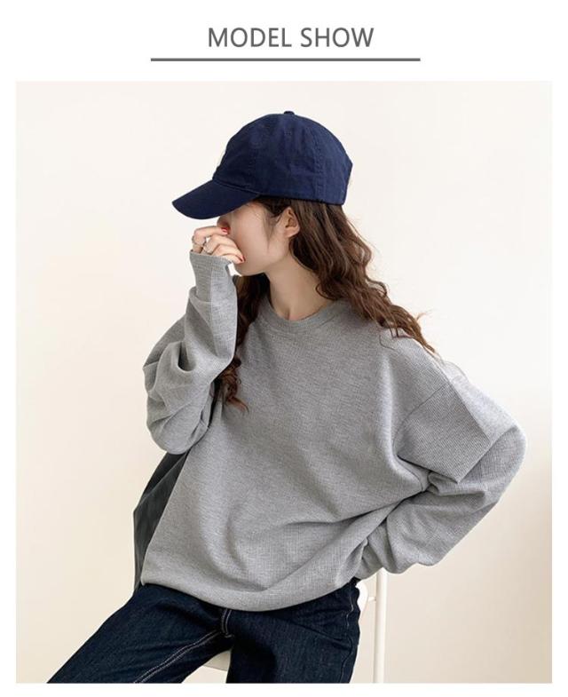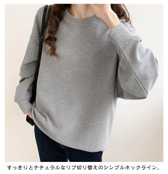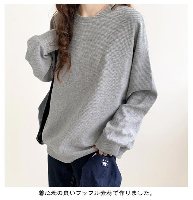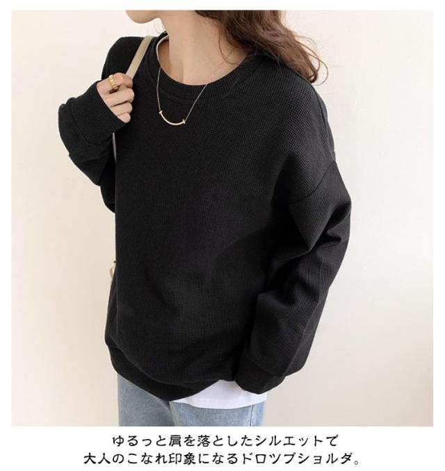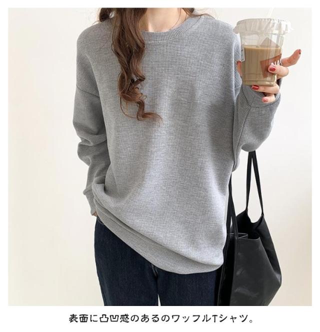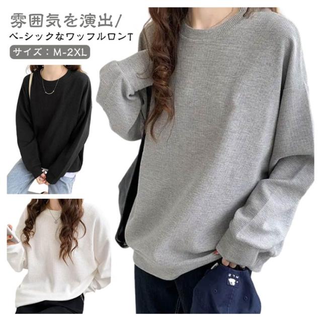 | 雰囲気を演出/ベ-シックなワッフルロンT/サイズ:M-2XL 着心地の良いフッフル素材で作りました。 表面に凸凹感のあるのワッフルTシャツ。 すっきりとナチュラルなリプ切り替えのシンプルネックライン。 ゆるっと肩を落としたシルエットで大人のこなれ印象になるドロツプショルダ。 腕まくりしやすくメリハリが効き着こなしやすい。 | |
