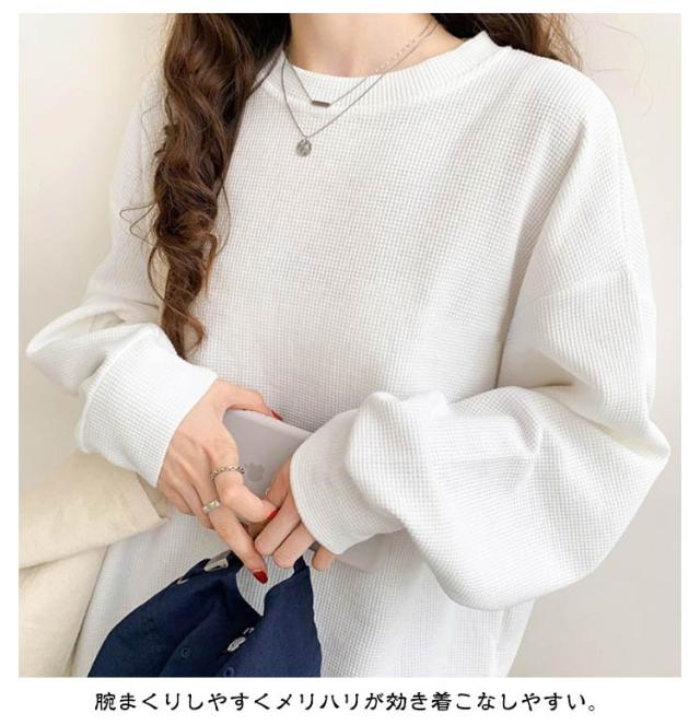 Tシャツ ロンT ins風 女性用 ワッフル長袖スポーツ Tシャツ トップス 長袖 ワッフルカットソー 春 夏 秋 ハイストリート韓国 ワッフルTシャツ スリム ルーズスウェットシャツ プルオーバー カットソートップス ゆったり 体型カバー