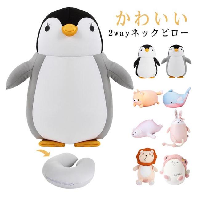 ネックピロー お昼寝枕 ビーズクッション 旅行用 車 ネックピロー ピロークッション 2way ぬいぐるみ 子供 仮眠 休憩 首枕 飛行機 機内 トラベルピロー アウトドア キャンプ 国内旅行