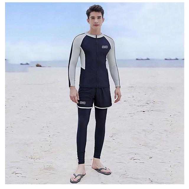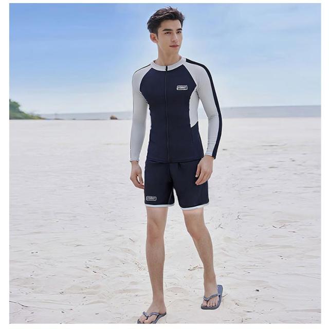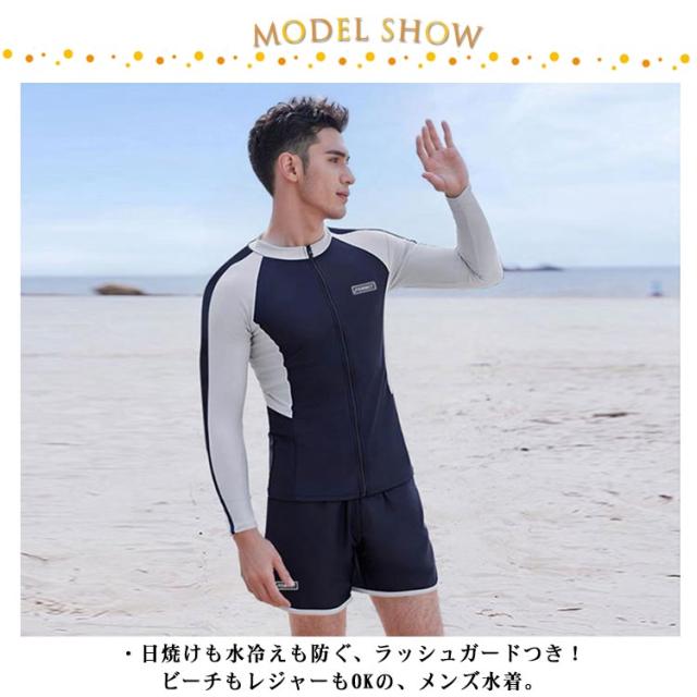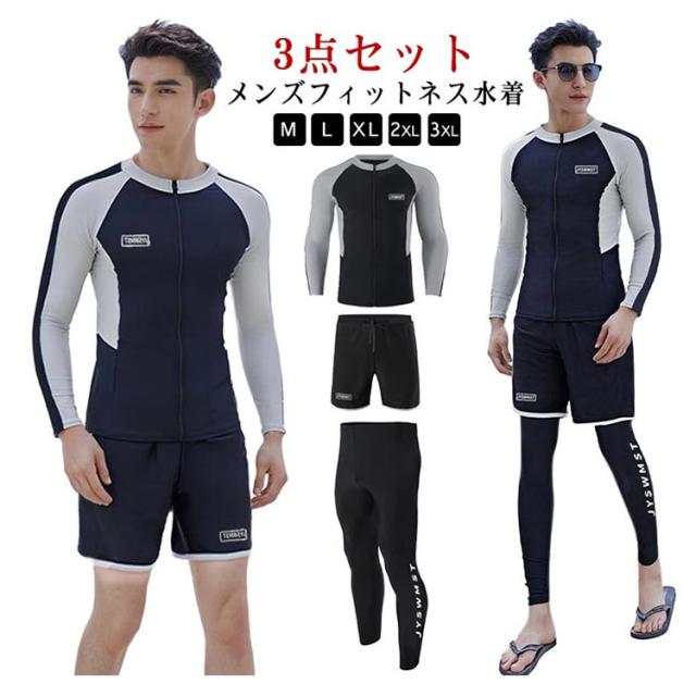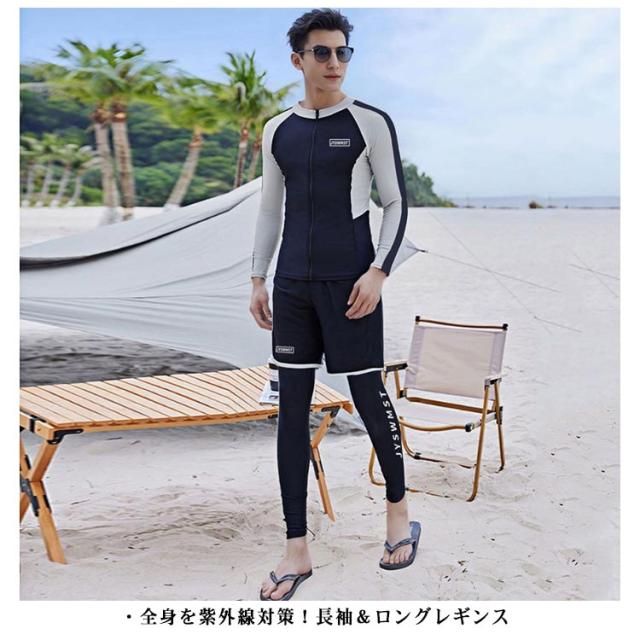 ショートパンツ メンズ 3点セット ラッシュガード 長袖 日焼け予防 海水浴 Tシャツ レギンス セパレートタイプ ジップアップ 紫外線対策 プール 海 水着 サーフィン スポーツウェア