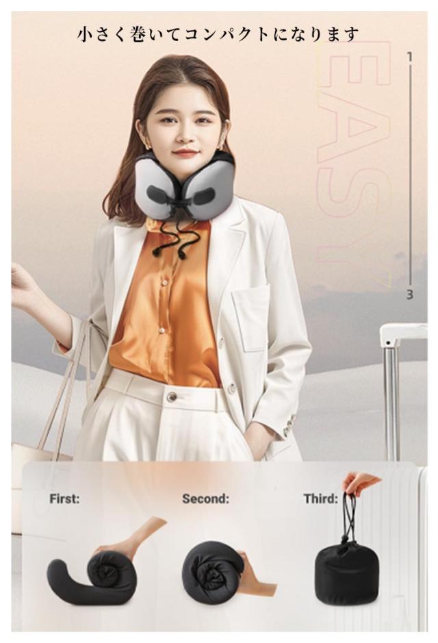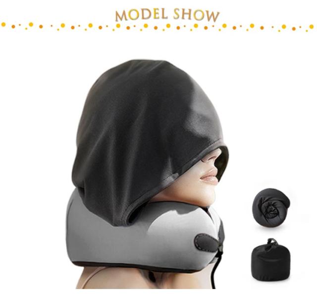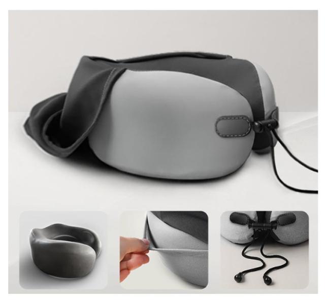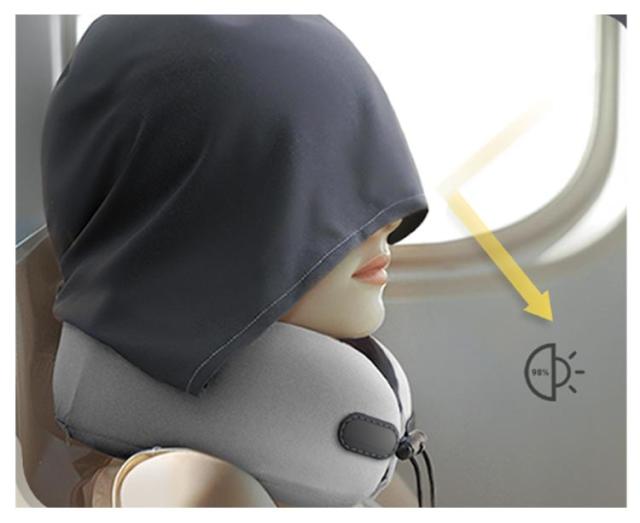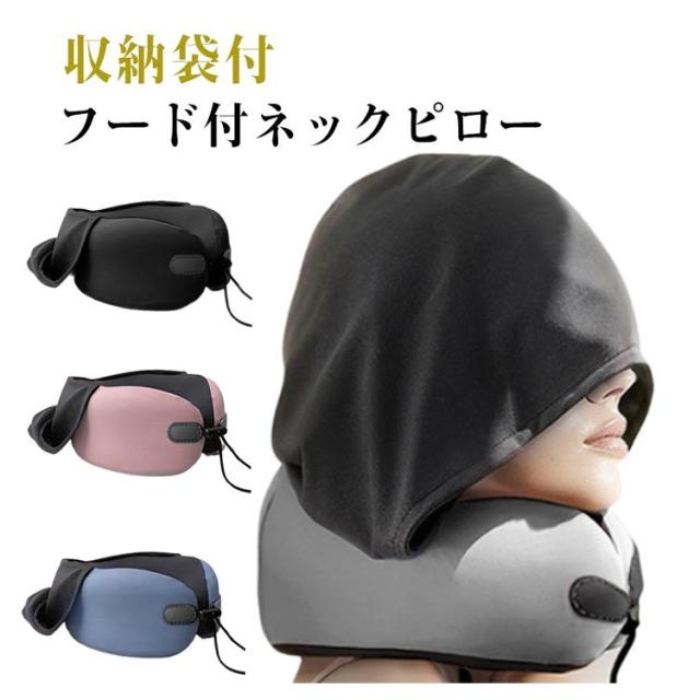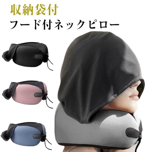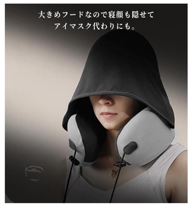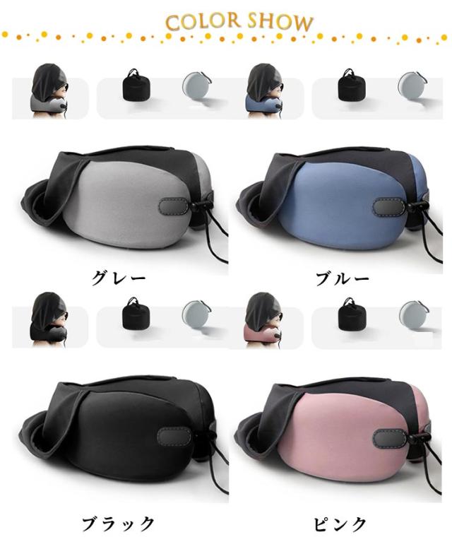 低反発素材 携帯枕 海外旅行 洗えるカバー 帽子付き 遮光 ネックピロー 首枕 タケ炭 旅行 ネッククッション 車 飛行機 目隠し 仮眠 機内 バス 新幹線 出張