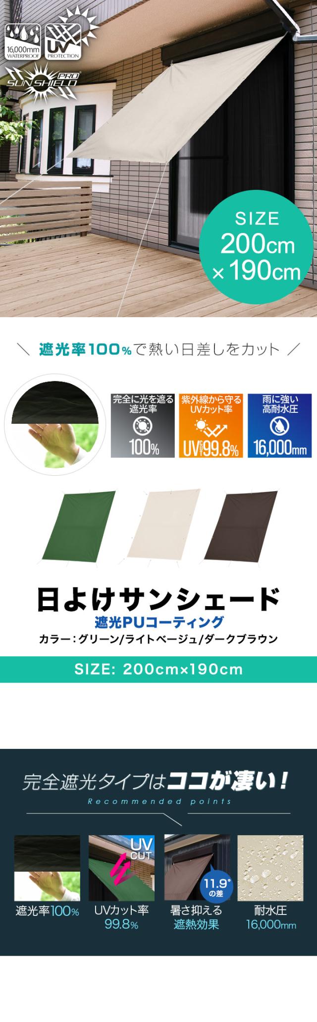 日よけ シェード サンシェード 日除け 幅200cm×190cm 簡単設置 UVカット 完全遮光 100% 遮熱 撥水 耐水 屋外 窓 ベランダ オーニング スクリーン 目隠し 省エネ 節電 たてす よしず 日除けシェード 日除けシート おしゃれ 1年保証 送料無料