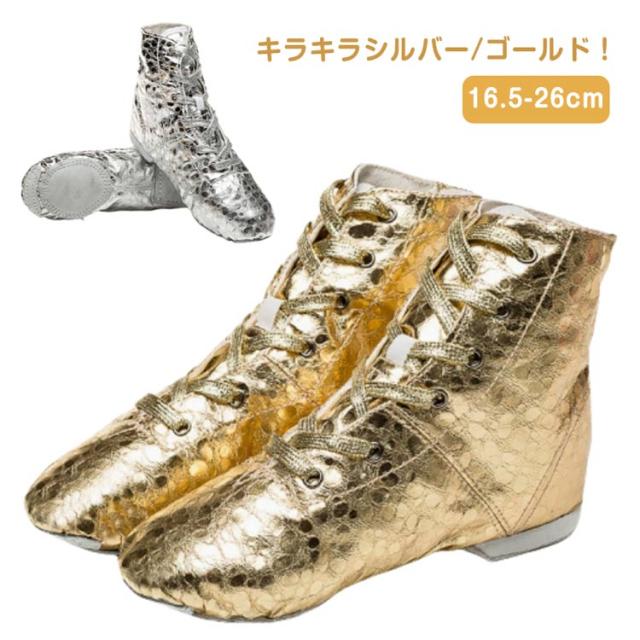 | キラキラシルバー/ゴールド! サイズ豊富、子供から大人まで使えるハイカットダンスシューズ。 様々ダンスをご利用していただけます。 | |