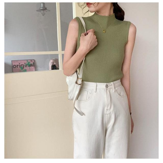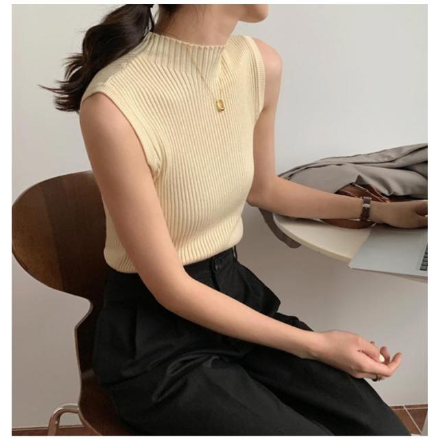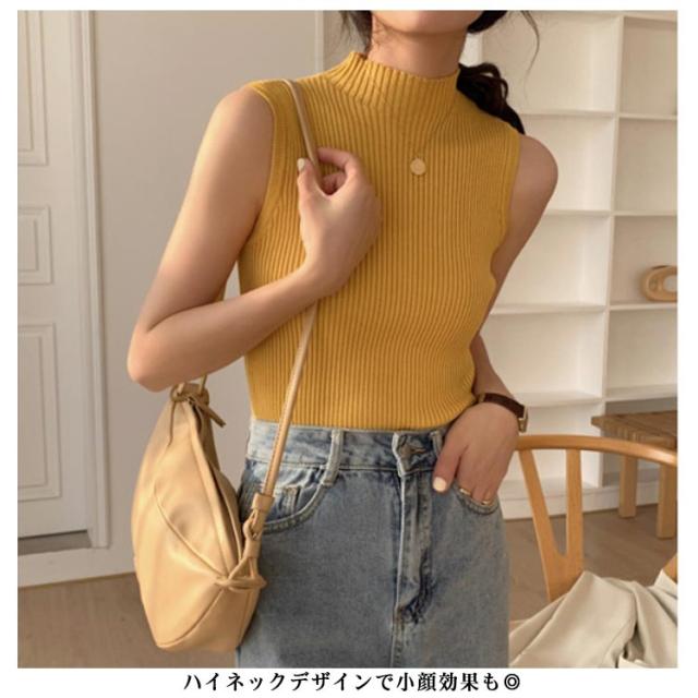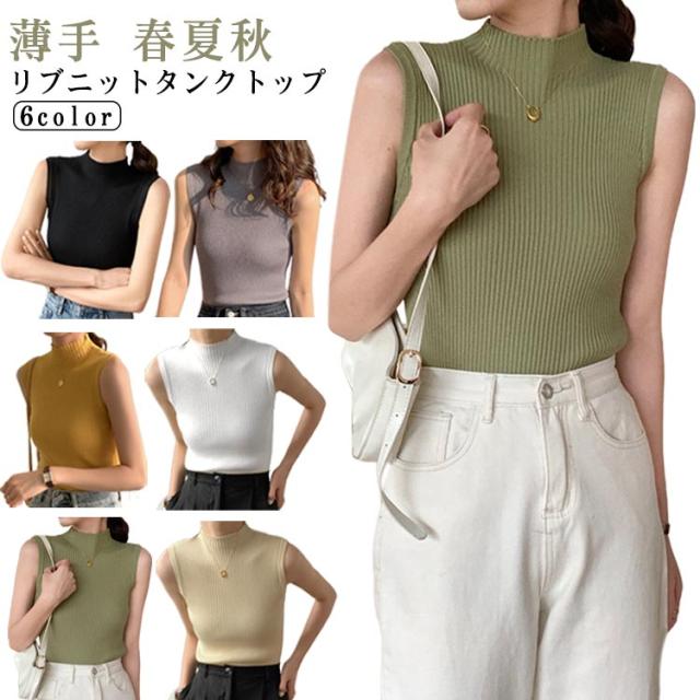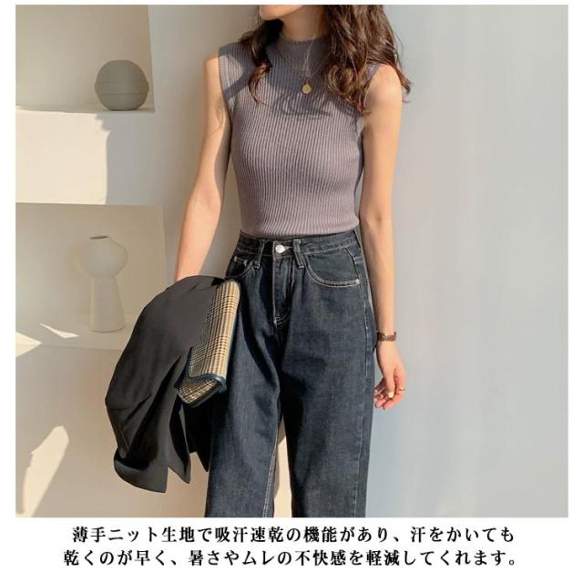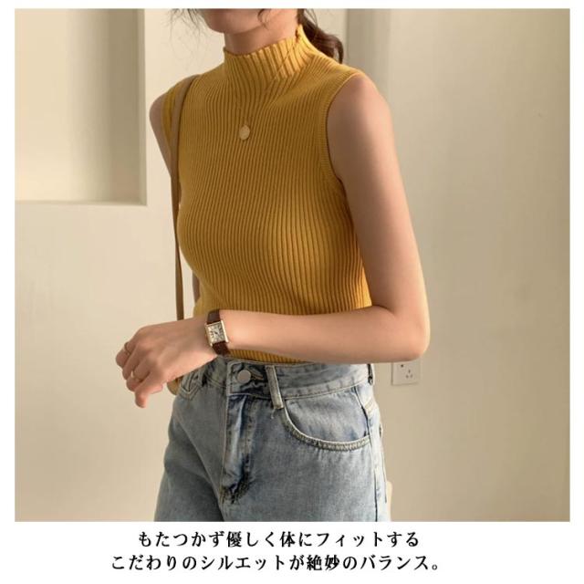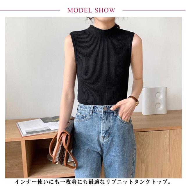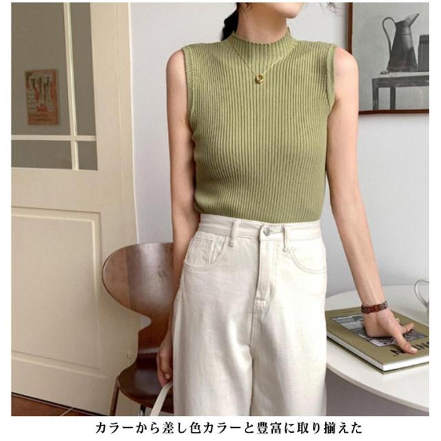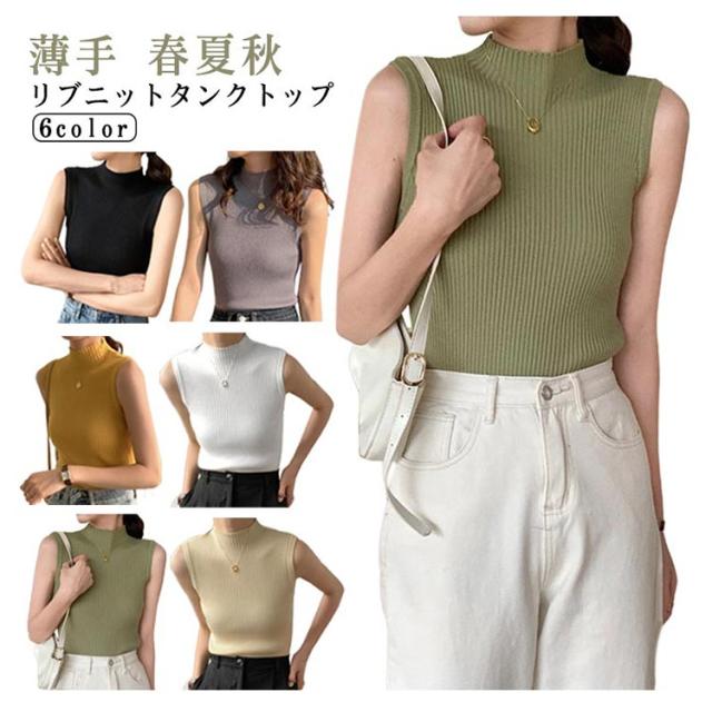 袖なし サマーニット タンク ハイネック ノースリーブ リブニット レディース リブニット モックネック ニットトップス インナー 下着 春 スリム 秋 薄手 トップス 夏 細身 透けない 蒸れない ストレッチ シンプル 無地 おしゃれ きれいめ 韓国風 【送無】