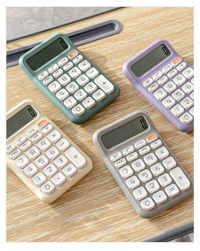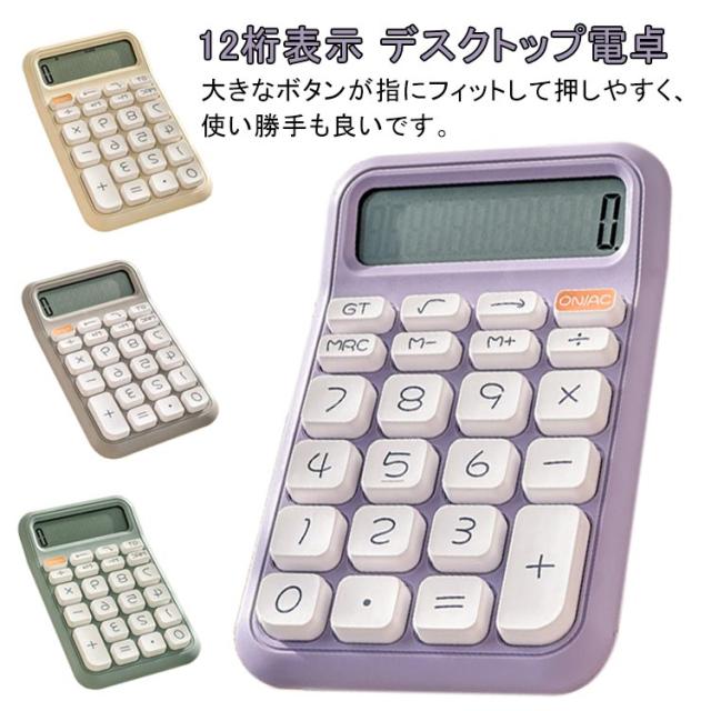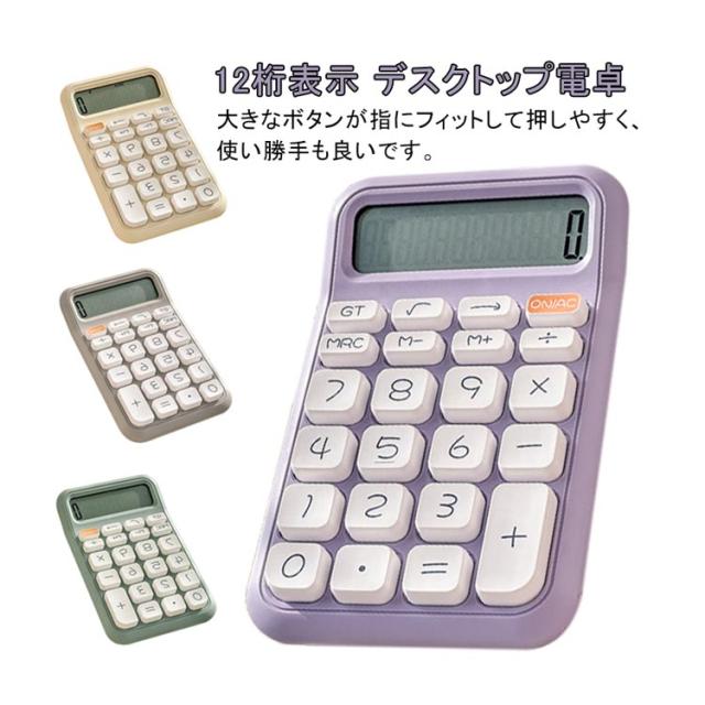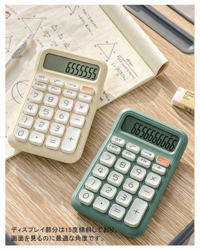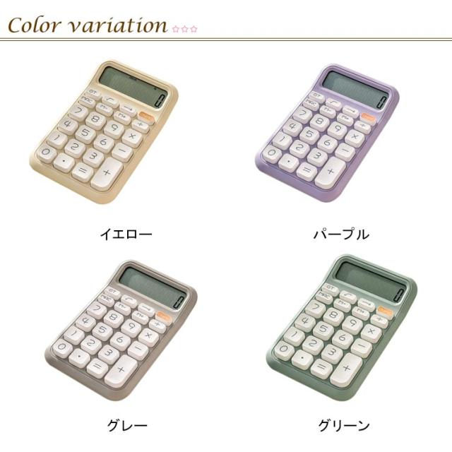 イエロー 可愛い 12桁 グリーン 電卓 カラフル電卓 計算機 かわいい シンプル レトロ グレー 電卓 丸ボタン 文具 事務用品 会社 学校 デスクトップ