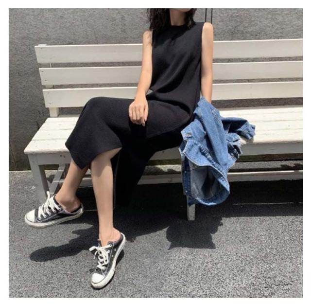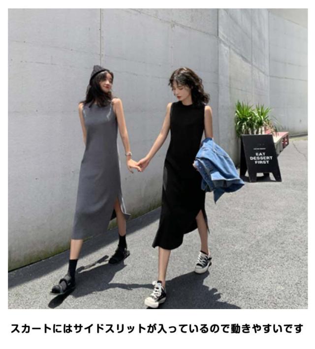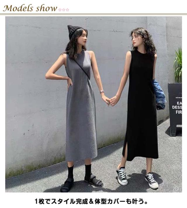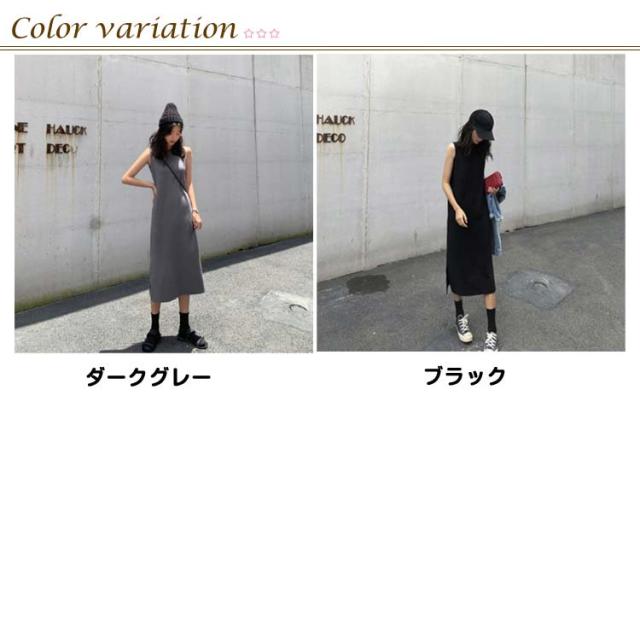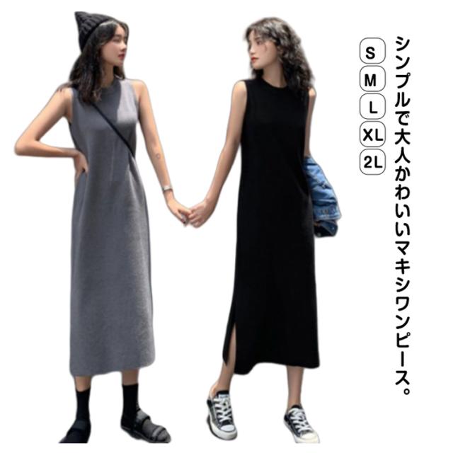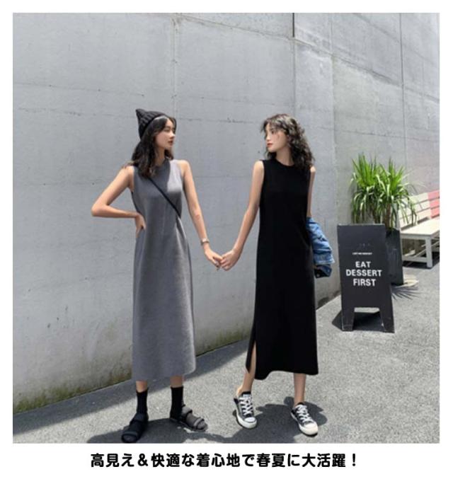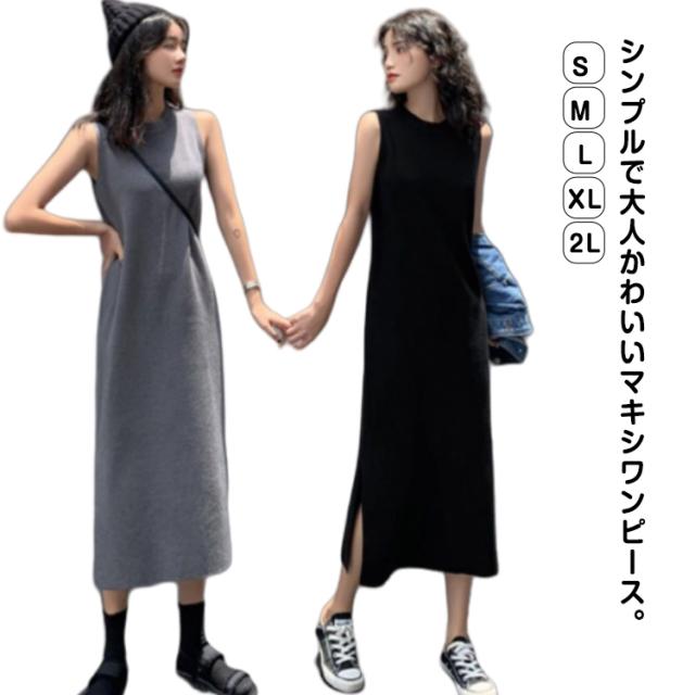 ロングワンピ レディース マキシワンピース サイドスリット ノースリーブ 体型カバー 高見え マキシワンピース 高身長 春 夏 大人カジュアル シンプル 楽ちん 着回し