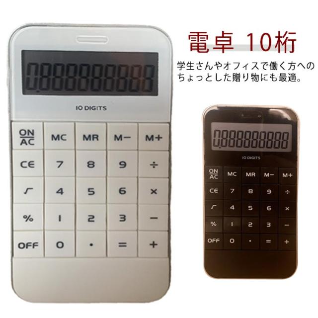| 電卓 10桁 手にフィットしやすいコンパクトなサイズ感で、日々の持ち運びにとても便利です。 大きな液晶画面で数字がとても見やすく、子供から大人まで幅広い層の方に使っていただけます。 どこでも手軽に持ち運べるので学校やオフィス・お店などとても幅広いシーンに便利。 約5分間何も操作をしないと自動的にシャットダウンする仕組みなので、省エネで電池寿命も長くなります。 学生さんやオフィスで働く方へのちょっとした贈り物にも最適。 | |