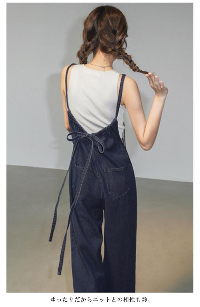 デニムサロペットパンツ 楽ちん パンツ レディース サロペット ノースリーブ オールインワン ロング丈 無地 ロングパンツ ワイドパンツ デニムサロペット シンプル リラックス 高見え シンプル カジュアル