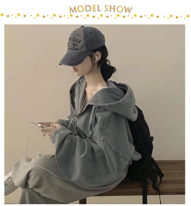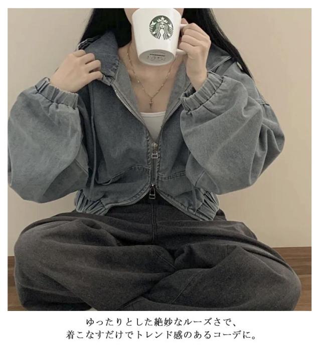 レディース パーカー パーカー デニム フード付き ジップ デニム クロップド丈 長袖 デニム 森ガール 羽織 デニム インディゴデニム ポケット付き ゆったり デニムパーカー コーデ 秋 体型カバー カジュアル