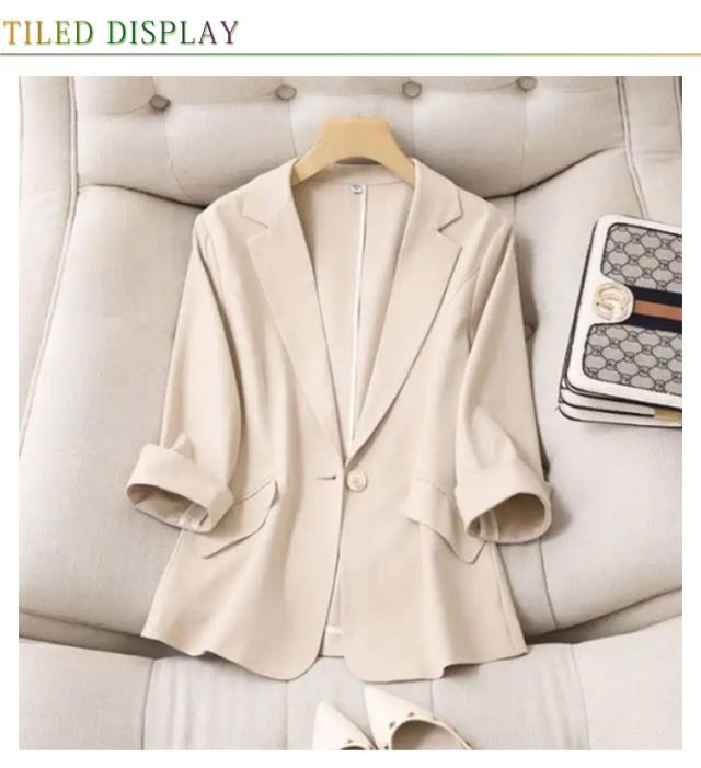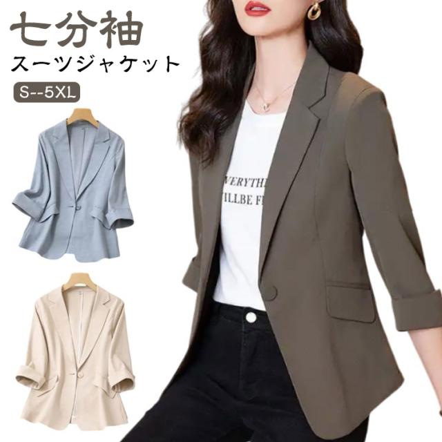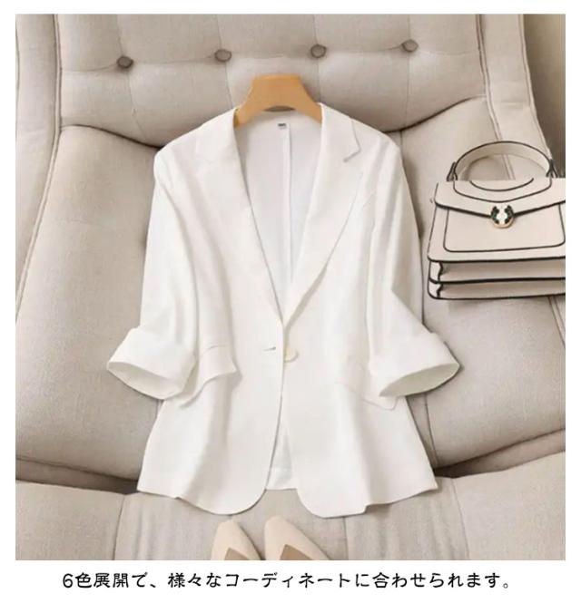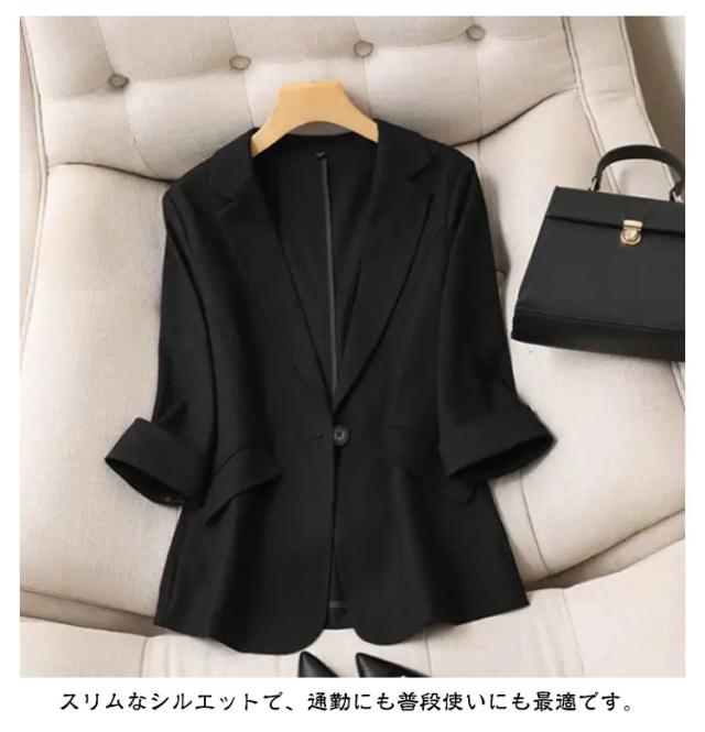 | 七分袖スーツジャケット ワンボタンデザイン 薄手で、春夏に最適です。日焼け止めや冷房対策にも スリムなシルエットで、通勤にも普段使いにも最適です。 6色展開で、様々なコーディネートに合わせられます。 | |