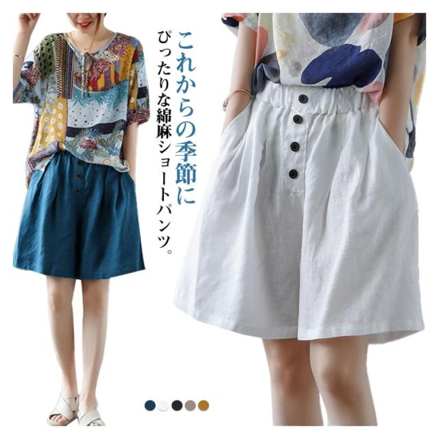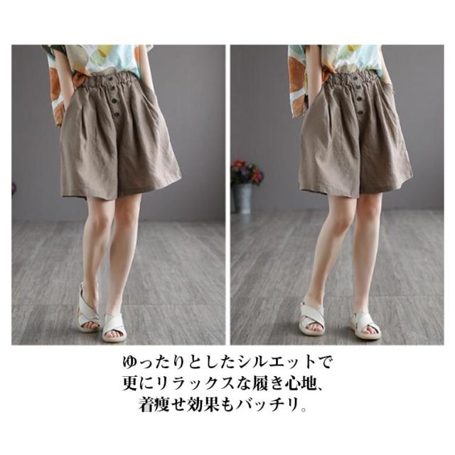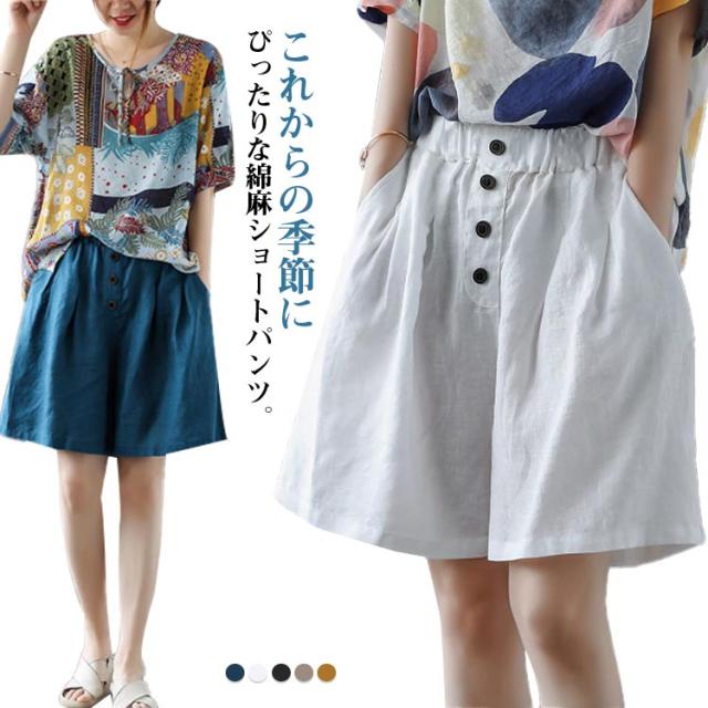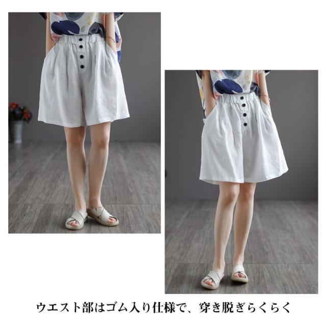 綿麻 レディース 麻 ボトムス 夏 ショートパンツ 綿 パンツ キュロット 五分丈 ハーフパンツ ルームウェア ゆったり 女の子 パンツ ズボン 部屋着 夏服 ガウチョパンツ ワイド aライン ゴム ハイウエスト 無地 リネンパンツ 薄手 パンツ 体型カバー