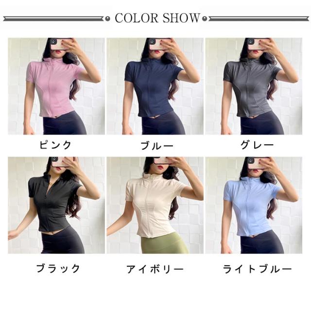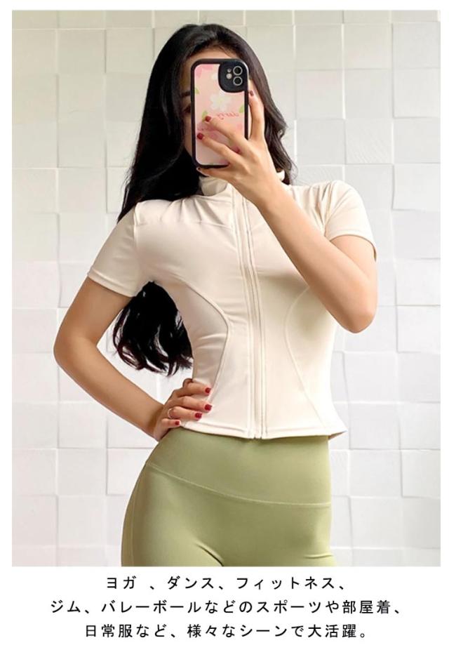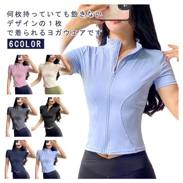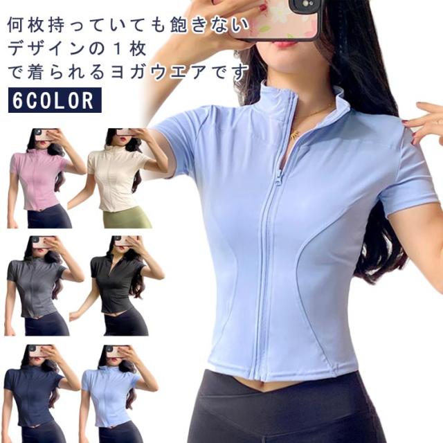 ヨガウエア レディース 速乾 無地 半袖 Tシャツ 下着 ヨガウエア ジャケット ヨガ スポーツウェア ジップアップ パーカー ゆったり フィットネス 吸汗 トレーナー ストレッチ ランニング ダンスウエア ピラティス