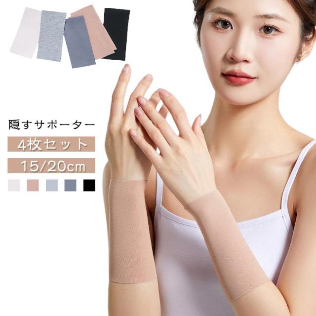 4枚セット 隠すサポーター 傷跡かくし 黒 肌色 ストレッチ ショート サポーター リストバンド 二の腕カバー 通気性 タトゥー タトゥー隠し tatooかくし 二の腕サポーター 手首かくし 刺青隠し 目立たない レディース メンズ