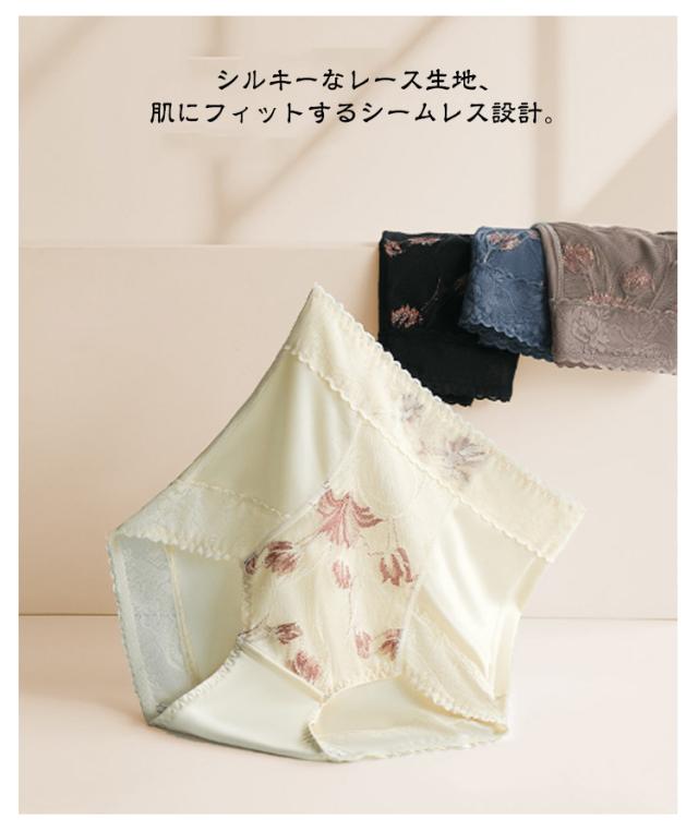 | ・深めのはき込みでヒップをすっぽり覆う安定 ・マチ部分には肌ざわりの良い天然シルクを使用しているため安心してご着用いただけます。 ・高い伸縮性で締めつけ感ゼロ。一日中ラクに穿けます。 ・シルキーなレース生地、肌にフィットするシームレス設計。 ・通気性に優れ、柔らかくて巻き上がりません。 | |