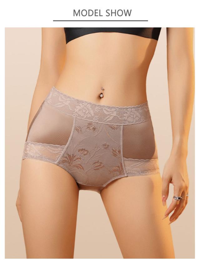 レディース インナー パンツ かわいい 深ばき 下腹すっきりん 下着 深履き レース お腹 シルク インナー ストレッチ 深め ハイウエスト シルキーレース 裾口レース 肌フィット 軽量 通気性