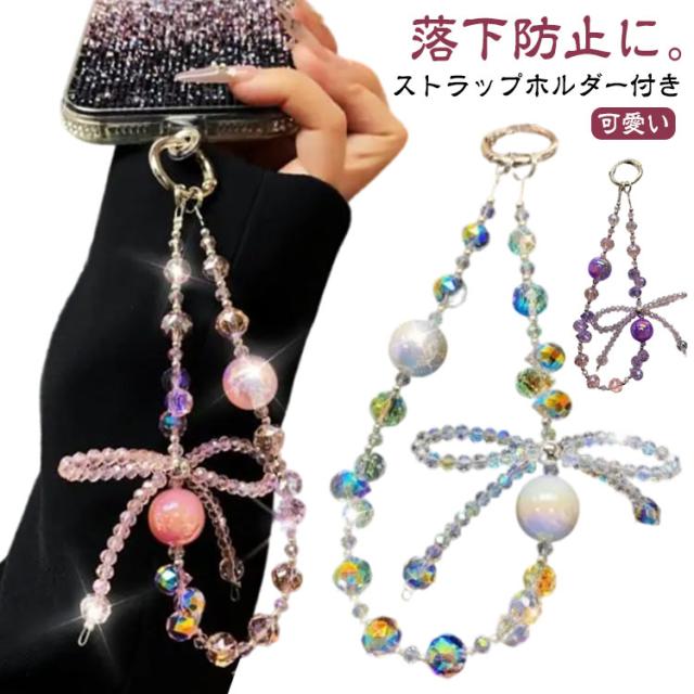 ハンドストラップ キラキラ ショートストラップ スマホ ストラップホルダー付き 可愛い 携帯ストラップ 手首 レディース スマホストラップ かわいい おしゃれ 女子 短い 落下防止 リボン リストストラップ アウトドア