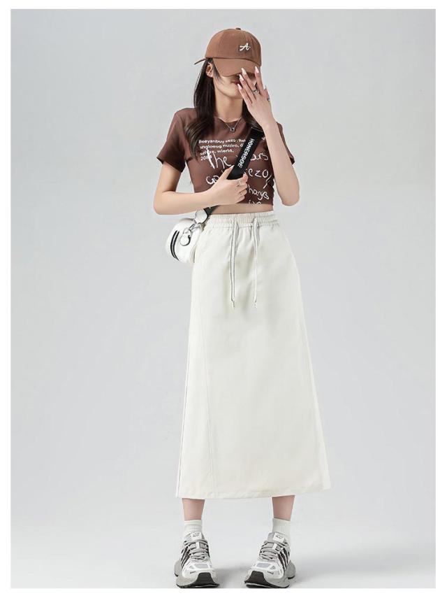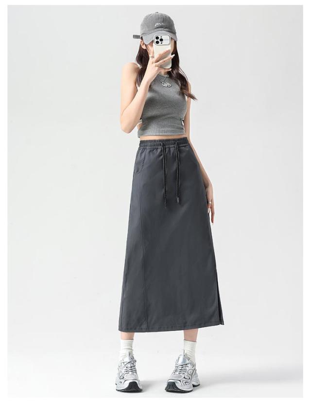 ホワイト Aラインスカート スカート ロングスカート ウエストゴム ロング スリット スリットスカート カーゴスカート 黒 Aラインスカート ボトムス 無地 シンプル レディース カーキ ベージュ スカート グレー 白 黒 大きいサイズ 春 夏