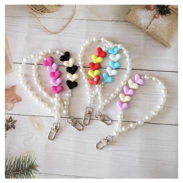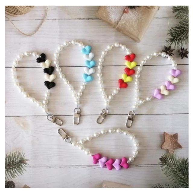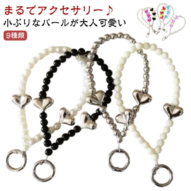 ストラップ 手首 パール スマホ ビーズ スマホストラップ スマホチェーン おしゃれ ハンドストラップ 落下防止 腕掛けストラップ チェーン ハート 携帯ストラップ 手首 かわいい 挟むだけ レディース 大人可愛い ショートストラップ 紐