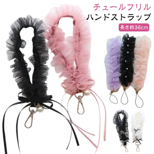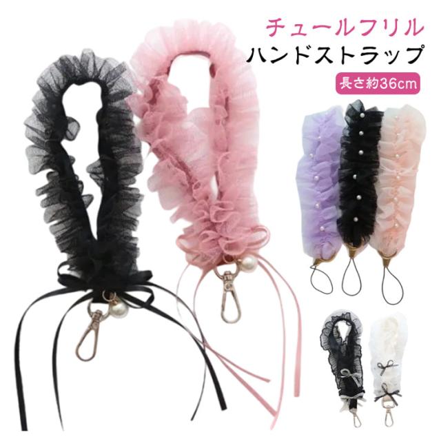 ハンドストラップ 手首 ハンドストラップ 可愛い フリル かわいい 韓国 パール スマホ 手首 スマホ スマホ ストラップ チュール チェーン 落下防止 スマホチェーン おしゃれ 紐 携帯ストラップ
