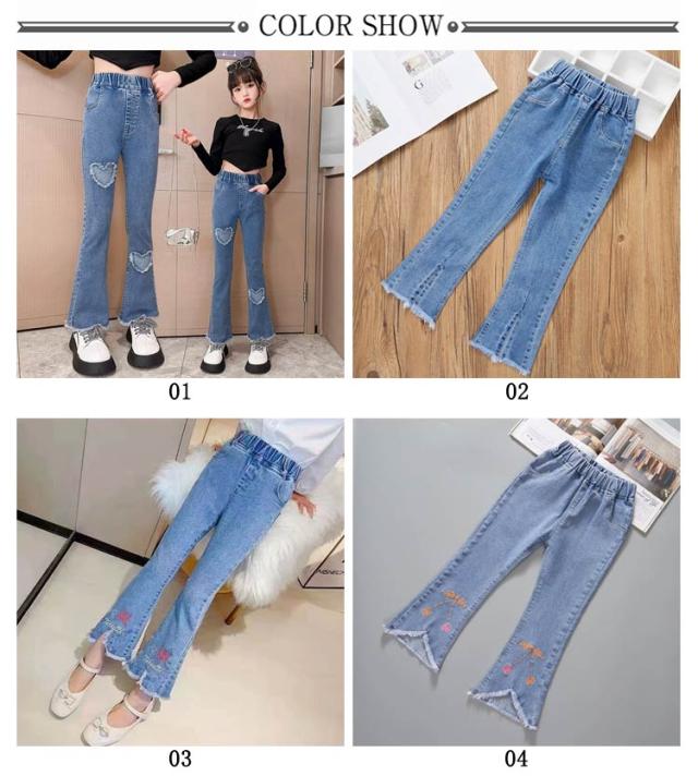 フレアパンツ キッズ ジーンズ ジーパン 100 秋 送料無料 ウエストゴム 女の子 長ズボン 送料無料 小学生 ダメージ 中学生 ジュニア 子供用パンツ おしゃれ 春 ジュニア 冬 ロングパンツ 110 120 130 140 150