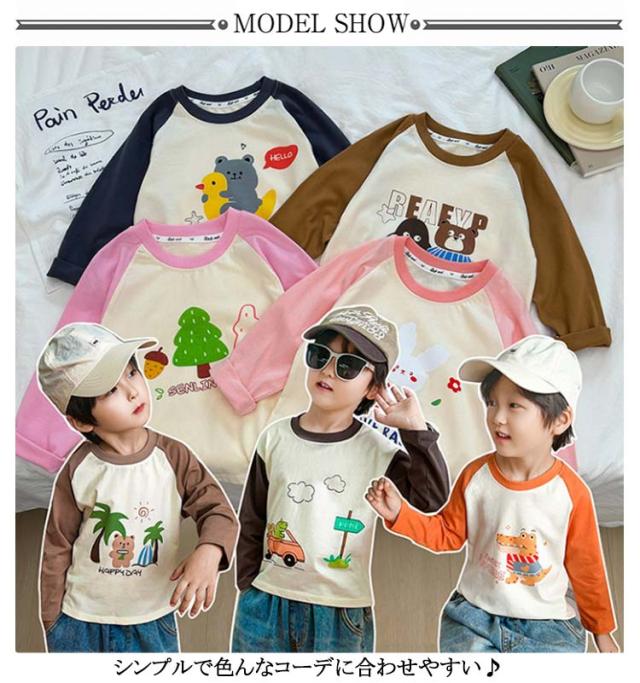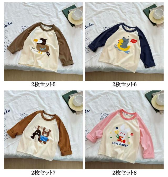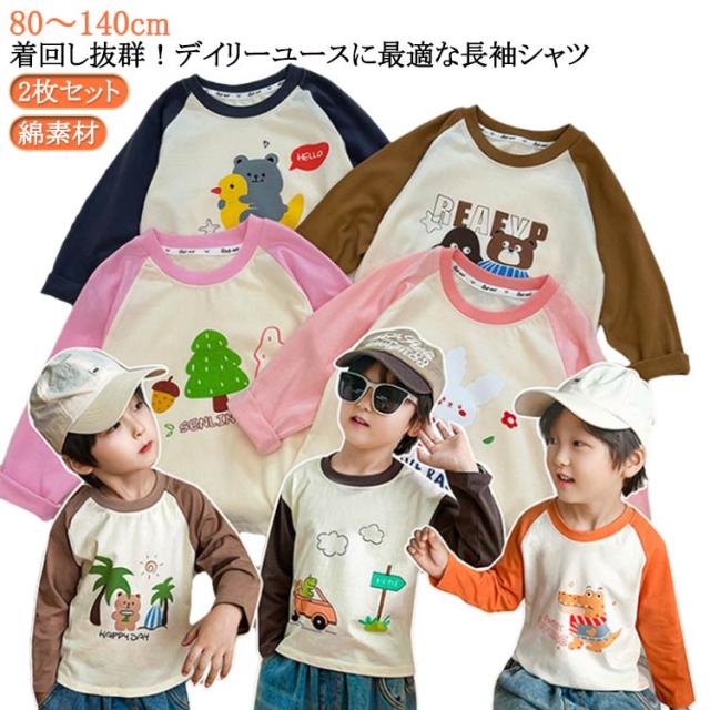 ロンT キッズ 綿 2枚セット 2枚セット Tシャツ 長袖tシャツ プリント 赤ちゃん 100 男の子 70 カットソー トップス 140cm 80 90 110 キッズ 120 130 女の子 シンプル カジュアル 保育園 幼稚園 お着替え用 ベビー服 コットン クルーネック