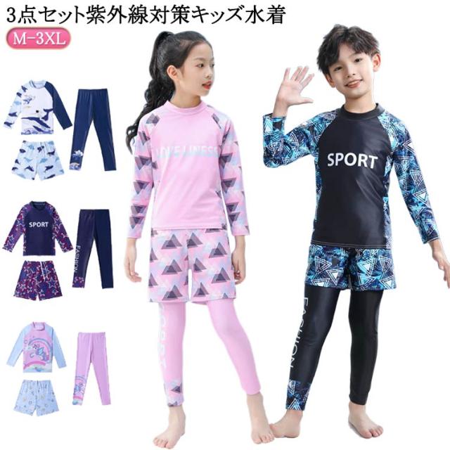 | 3点セット紫外線対策キッズ水着 長袖で首元から足首までカバー! ビキニ焼けの心配なし 長袖デザインで日焼け対策としてだけではなく、 擦り傷や、くらげ・害虫などからも肌を保護できます セパレートなのでお着替えもおトイレも簡単になります お肌の露出を抑えて水着の跡がくっきり残らないのが嬉しい | |