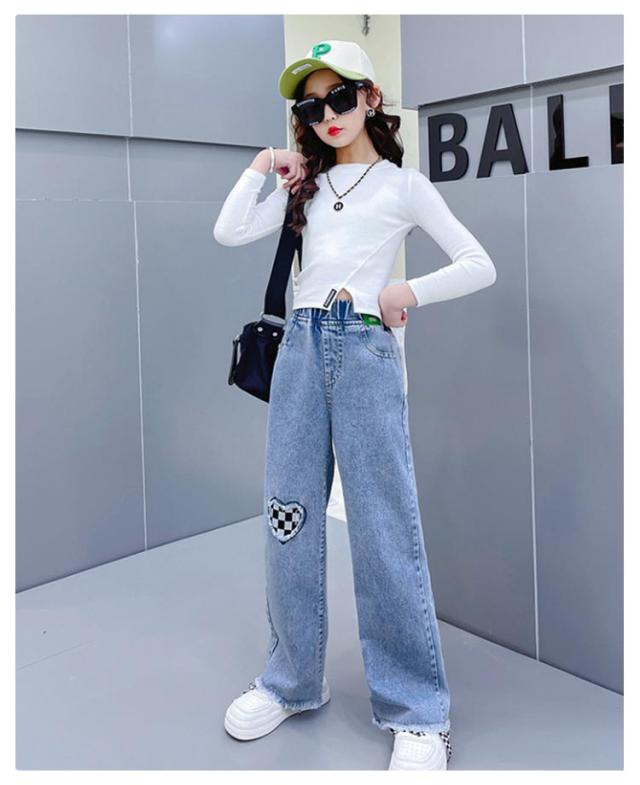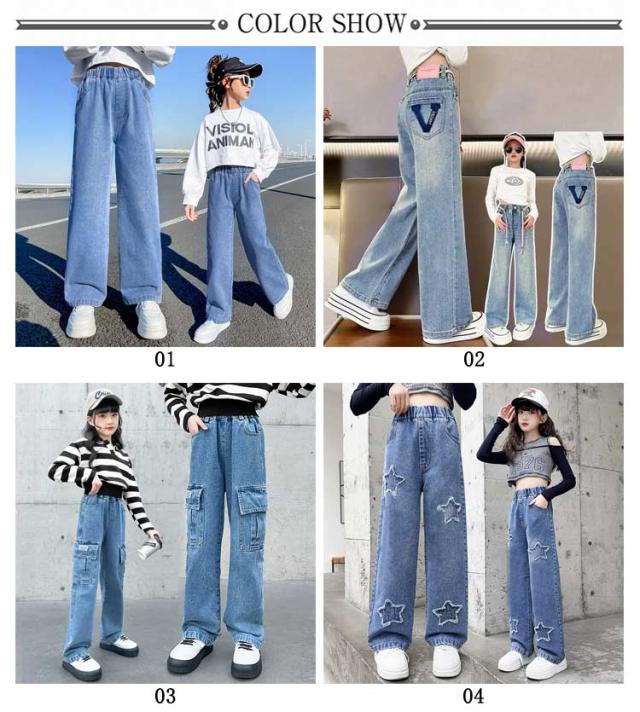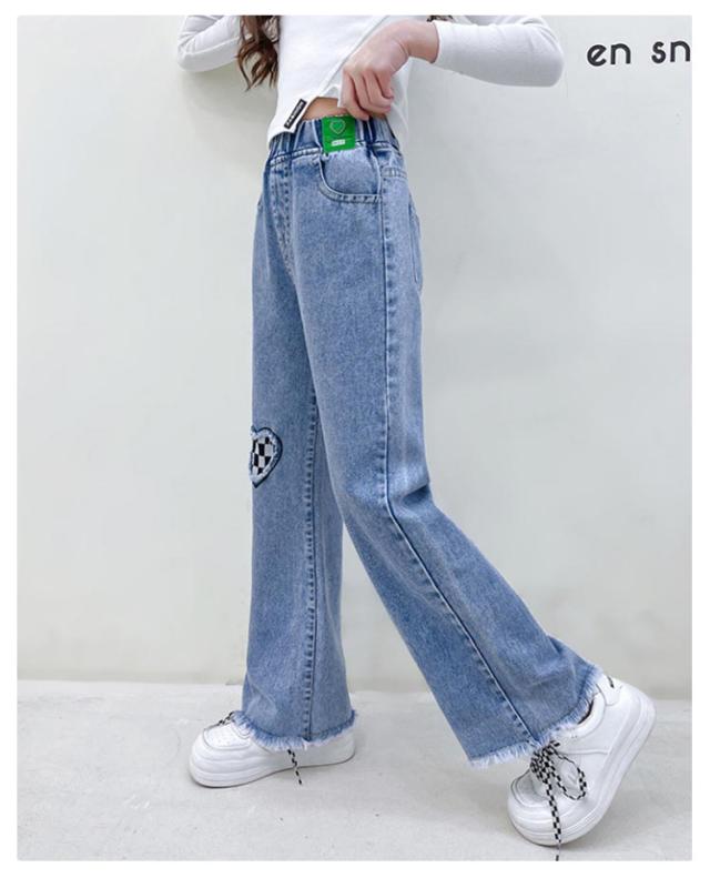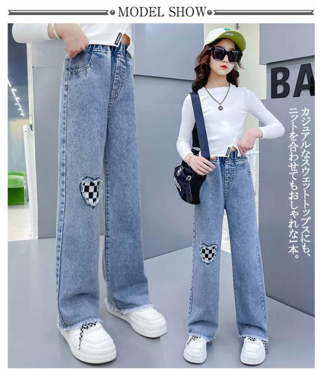 衣装 送料無料 キッズ ダメージ加工 子供服 Jeans 韓国子ども服 フレアパンツ 韓国子供服 100cm ダンス ジーンズ 120cm 130cm 140cm 150cm 160cm ジュニア 服 女の子 デニム ストレート ワイドパンツ ジーパン ウエストゴム 110cm ロングパンツ 小学生