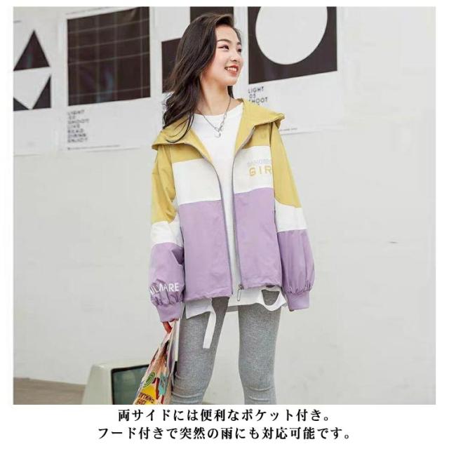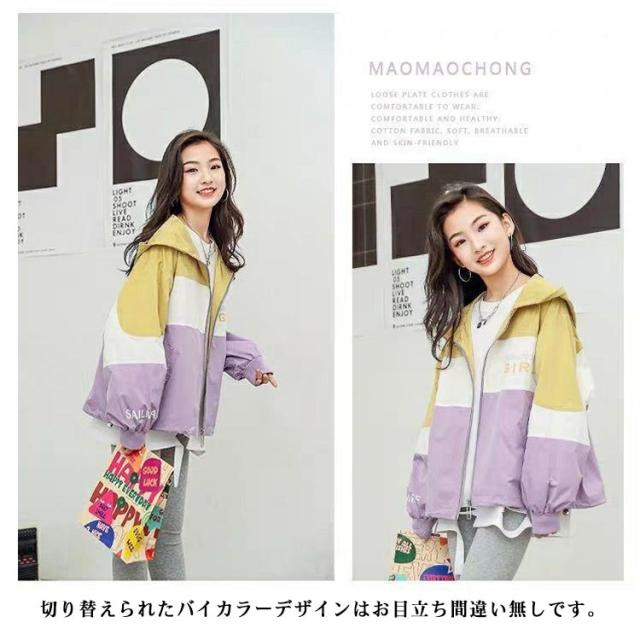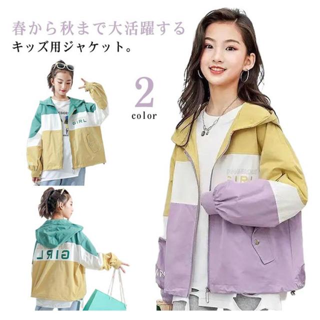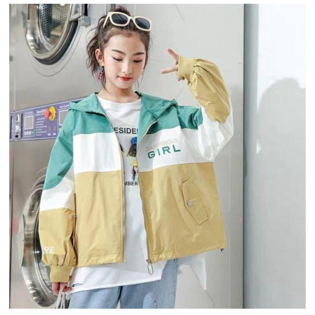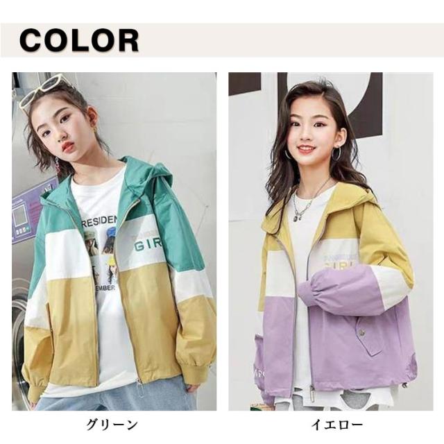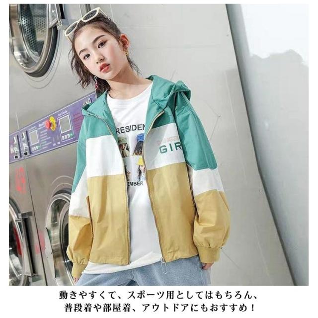 ジャンパー 女の子 防風 お洒落 トップス ジャケット 子供服 秋物 フード付き ブルゾン アウター マウンテンパーカー ウィンドブレーカー コート 薄手 ジップアップ アウター 配色 切り替え キッズ 150 ガールズ ジャンパー カジュアル 春 秋 130 140 春 160
