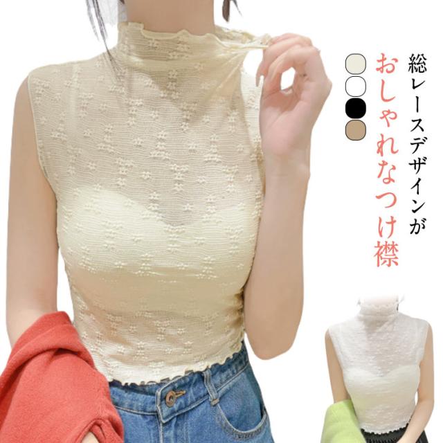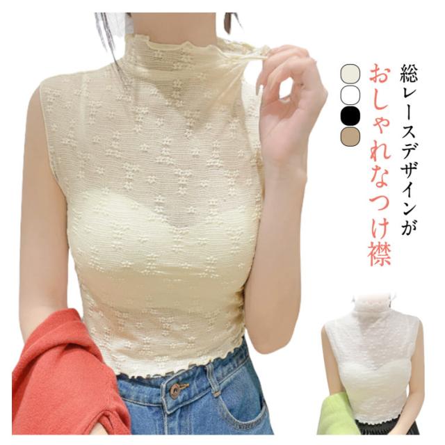 カットソー ハイネック 付け襟 花柄 つけ襟 フリル 総レース ハイネック メロウネック 付け衿 ノースリーブ シースルー カットソー 重ね着用 シースルー レイヤード ブラウス カットソー プルオーバー 重ね着用 ノースリーブ 花柄レース