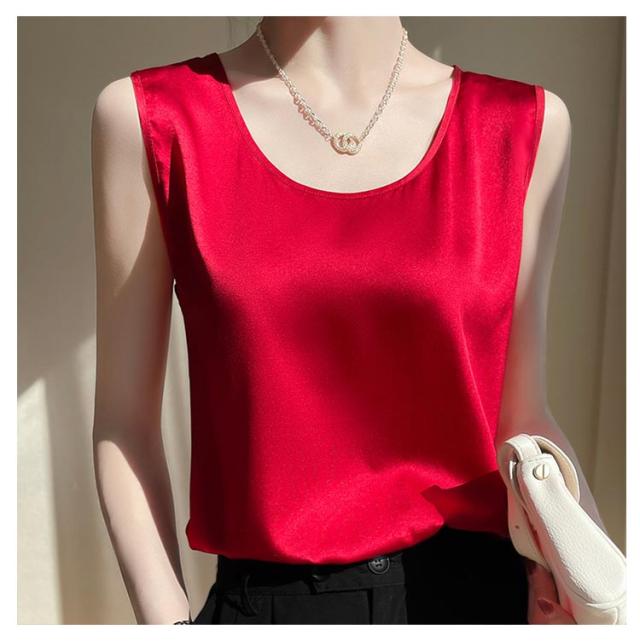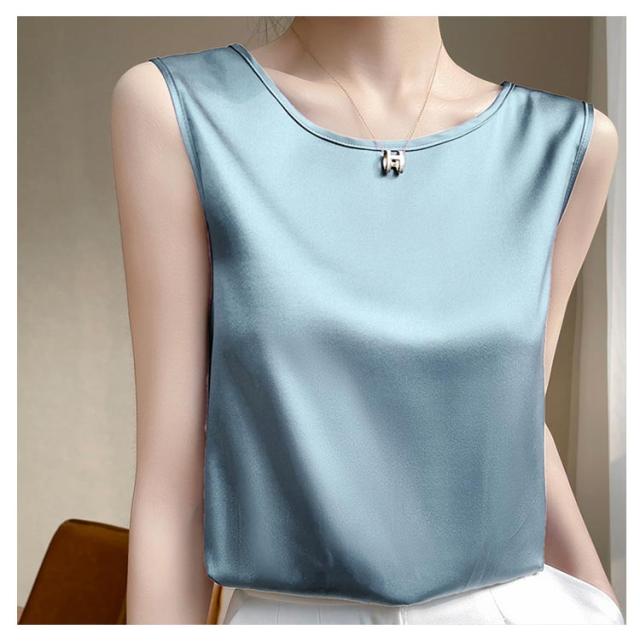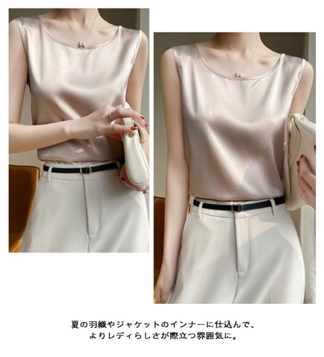 トップス 袖なしブラウス ゆったり 大きいサイズ 光沢感 上品 サテン風 インナー トップス 光沢感 ラウンドネック 肌着 大きいサイズ レディース 重ね着 春夏 大人女性 ツルツル 薄手 ブラ紐隠し