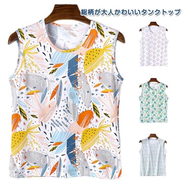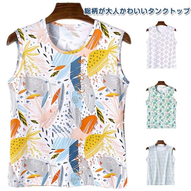 レディース タンクトップ ミセス タンクトップ 花柄 綿 コットン 総柄 シニア ノースリーブ 部屋着 インナー 女性 婦人 春夏 トップス 柔らかい 蒸れない 大きいサイズ 袖なしトップス ルームウエア 通気性