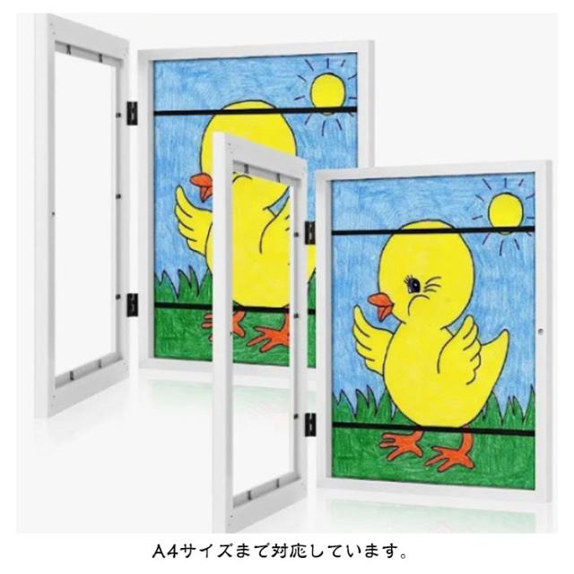 | 子供の絵を美しく飾るためのアートフレームです。 保管用途に最適!似顔絵も保存可能! 多機能額縁!画用紙・フォトフレームにもなる。 A4サイズまで対応しています。 | |