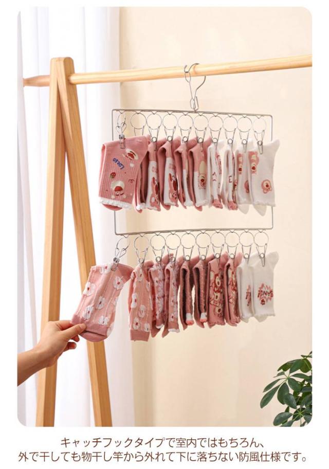 室内 20個ピンチ付き ステンレス 物干しハンガー クリップハンガー 靴下 防風フック ピンチハンガー 屋外 2本セット 洗濯バサミ 洗濯物干し 洗濯ハンガー 2本セット タオル 下着 収納 コンパクト 丈夫