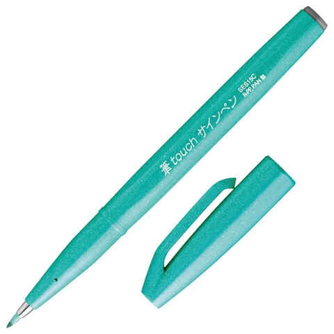 筆タッチサインペン エメラルドグリーン 細字 0.7〜1.5mm 水性 筆文字 カリグラフィー イラスト 水彩画 ぺんてる 送料無料
