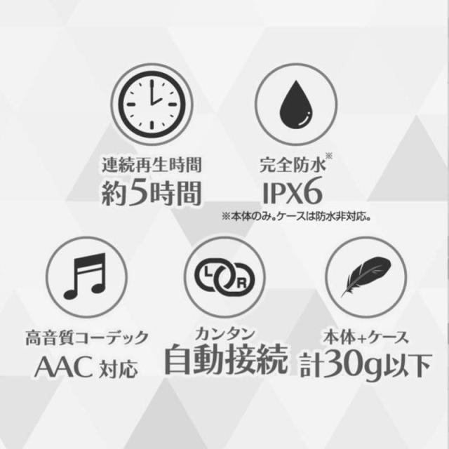 完全ワイヤレスイヤホン bluetooth 高音質コーデックAAC対応イヤホン 防水 充電ケースで2回分充電可能 パステルカラー