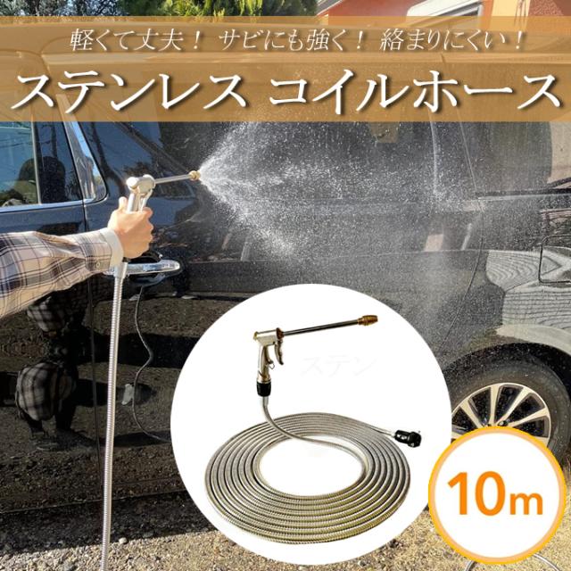 送料無料 10m ステンレスコイルホース F20526 散水ホース ステンレス コイルホース 富士商 ガーデニング 洗車