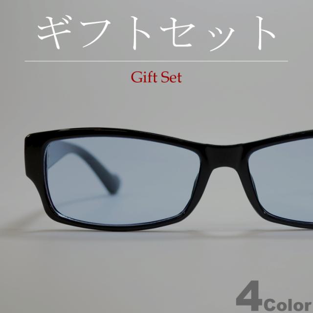 【ギフトセット】 サングラス 伊達メガネ メンズ レディース UVカット スクエア 四角 ウエリントン ライトカラーレンズ 薄い色 ブラック ブルー グレー スモーク ブラウン クリアー 透明レンズ 全4色