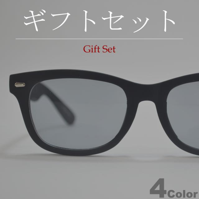 【ギフトセット】 サングラス 伊達メガネ メンズ レディース ウエリントン ライトカラーレンズ 薄い色 ブラック 黒 ブルー 青 スモーク グレー 灰色 マット 艶消し クリアー 透明レンズ 全4色