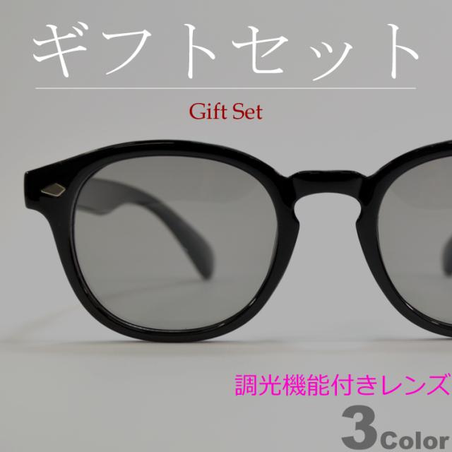 【ギフトセット】 調光サングラス 偏光サングラス 超軽量 釣り スポーツ ドライブ 運転 伊達メガネ メンズ レディース UVカット ボストン ラウンド 丸メガネ ライトカラーレンズ 薄い色 全3色