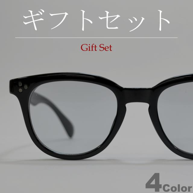 【ギフトセット】 サングラス 伊達メガネ メンズ レディース ウエリントン ライトカラーレンズ 薄い色 ブラック ブルー スモーク グレー ピンク 全4色
