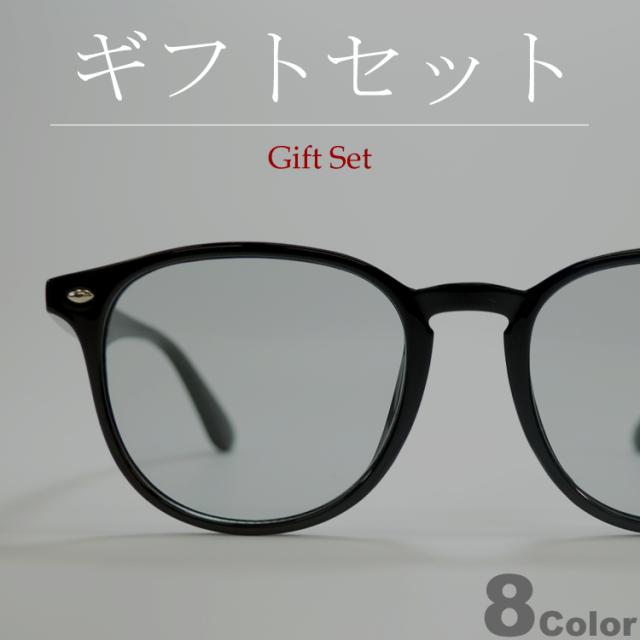 【ギフトセット】 サングラス 伊達メガネ メンズ レディース ウエリントン ボストン ラウンド 丸メガネ ボスリントン ライトカラーレンズ 薄い色 ブラック ブラウン ベージュ ホワイト グレー スモーク ブルー オレンジ 全8色