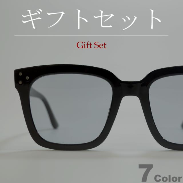 【ギフトセット】 サングラス 伊達メガネ メンズ レディース ワイドスクエア 大きいレンズ ライトカラーレンズ フラットレンズ 薄い色 ブラック デミ グリーン ブルー ブラウン グレー オレンジ イエロー 全7色