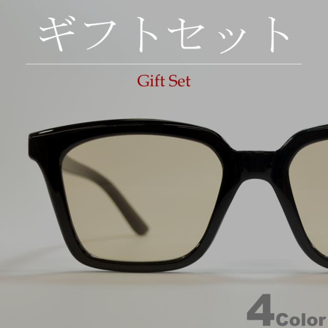 【ギフトセット】 サングラス 伊達メガネ メンズ レディース ウエリントン ライトカラーレンズ 薄い色 ブラック スモーク グレー ブラウン ベージュ 全4色